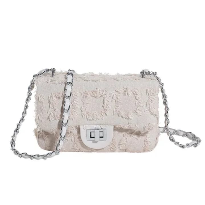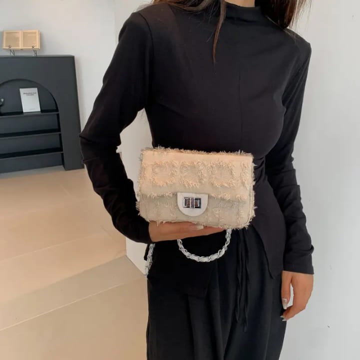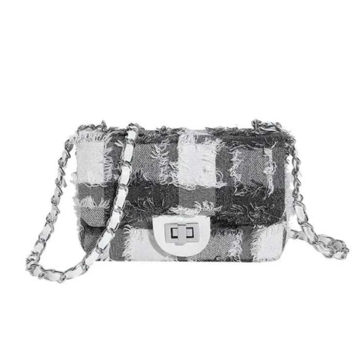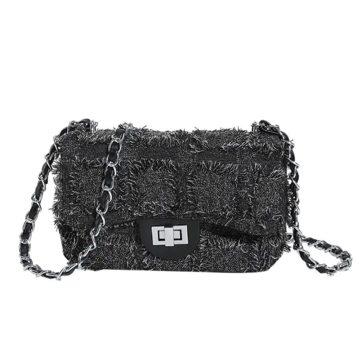 Black Style Sling Bag for Women’s Shoulder Denim Chain Flip Small Square Bag Diamond Pattern Versatile Fashion