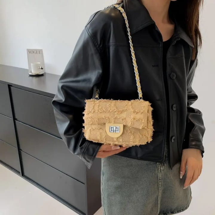 Be the first to review “Black Style Sling Bag for Women’s Shoulder Denim Chain Flip Small Square Bag Diamond Pattern Versatile Fashion”