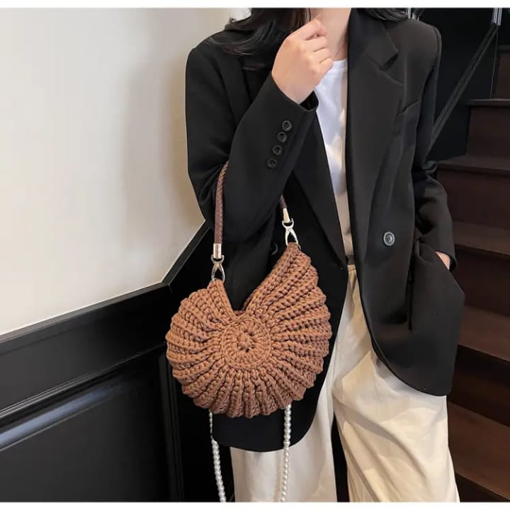 Be the first to review “Women Handwoven Tote Chunky Yarn Crochet Crossbody Shoulder Bag Knit Woven Seashell Bag with Pearl Strap”